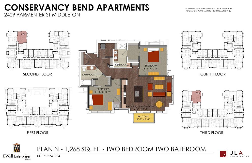 Stunning TOWNHOMES and APARTMENTS located near the Conservancy in the heart of Middleton! Conservancy Bend offers 2 bedroom Townhomes with attached garage and executive studio, 1, 2, and 3-bedroom apartment homes. Ideally situated on Parmenter Street in Middleton, the convenient location provides easy and efficient access to all your home, work and leisure destinations. We are also within walking distance to shopping, schools, and the abundance of restaurants in charming downtown Middleton. Relax and rejuvenate in the hot tub, lounge around the beautifully landscaped community patio and enjoy the fire pit, or hang out in the upscale Club Room to enjoy a game of pool or catch the game on the large screen HDTV. Just steps from your front door, you can also immerse yourself in the natural beauty and serenity of Pheasant Branch Conservancy. The nature preserve offers miles of scenic, groomed hiking and biking trails. Enjoy nature in the midst of your neighborhood!