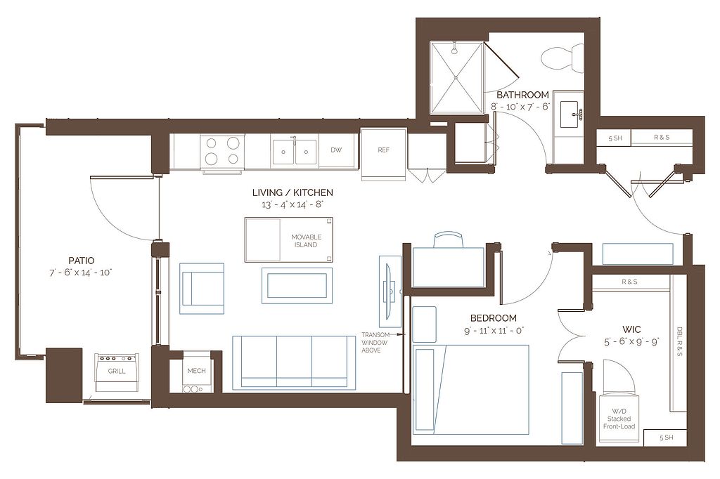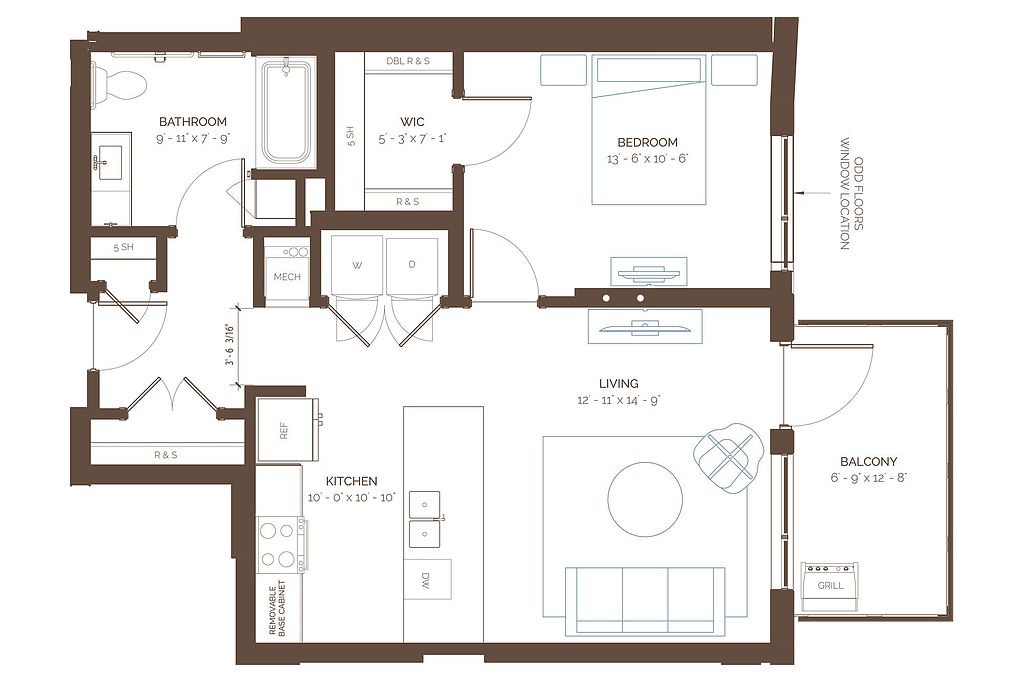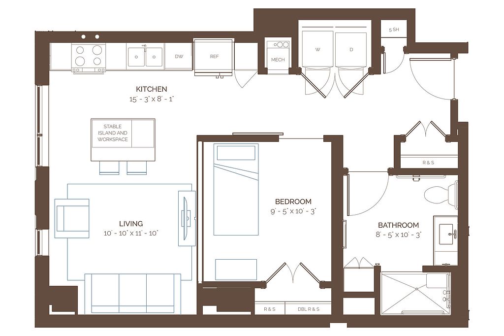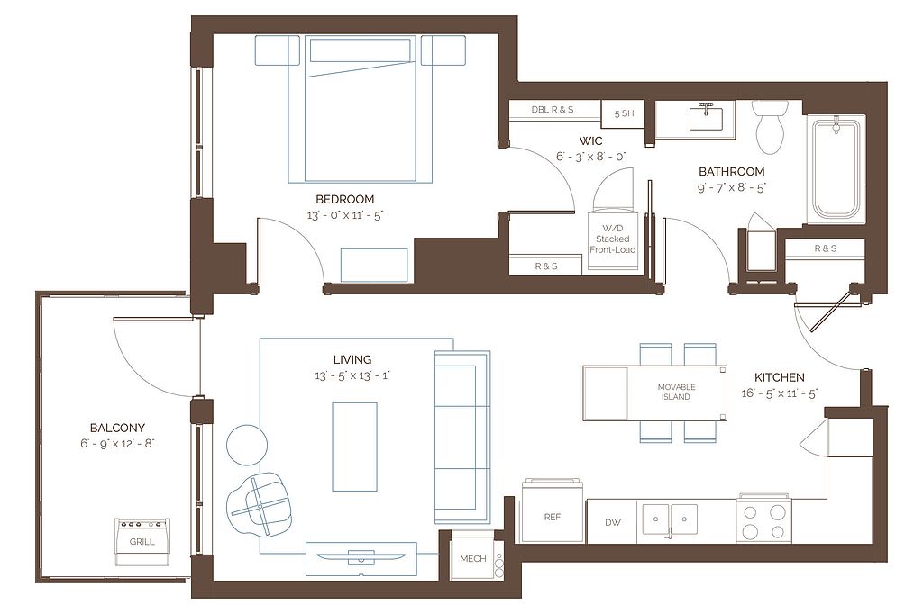 - 1 Bedroom + Den | Lemongrass | 887 SF