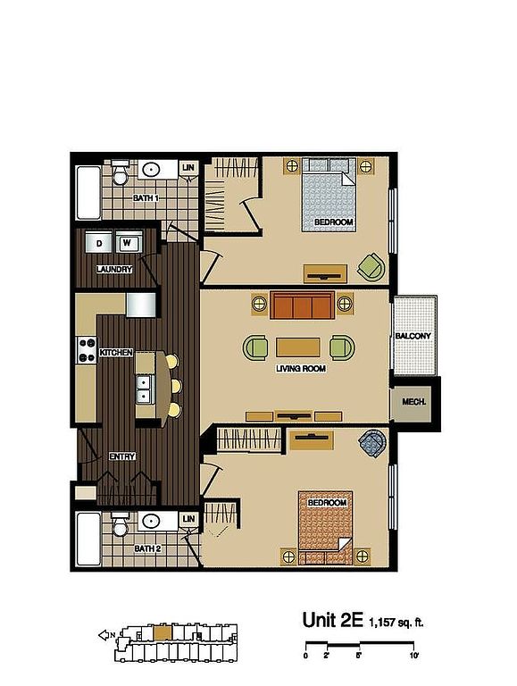 Ceramic tile bathsFull-size washers and dryersPrivate outdoor retreatCarefully designed floor plan