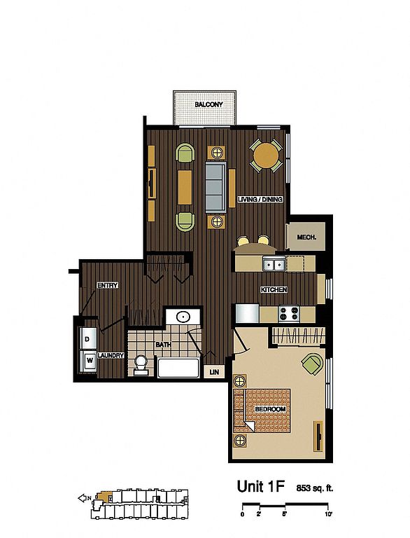 - Washer: Full-size washer and dryer in each apartment