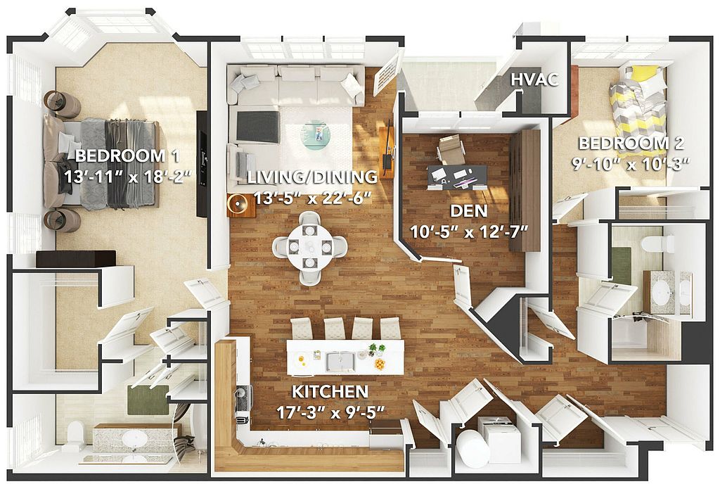 - One And Two Bedroom Floorplans Available