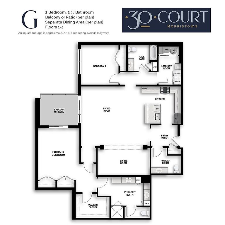 Yes, 30 Court Street Apartments has in-unit laundry for some or all of the units.