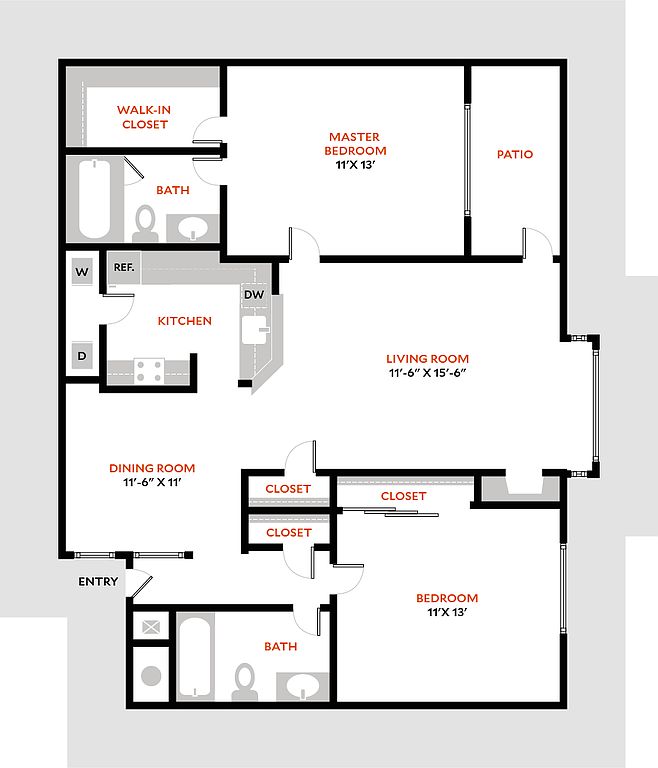 - Large Closets: Mirrored Closet Doors