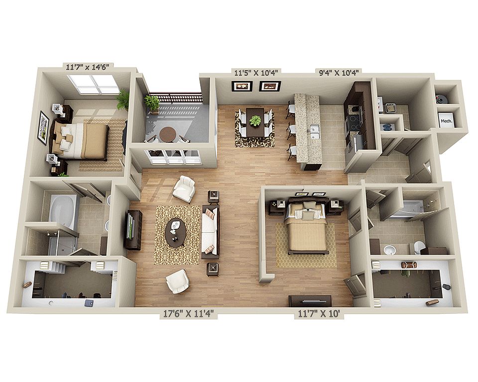 - Wood: Wood plank flooring