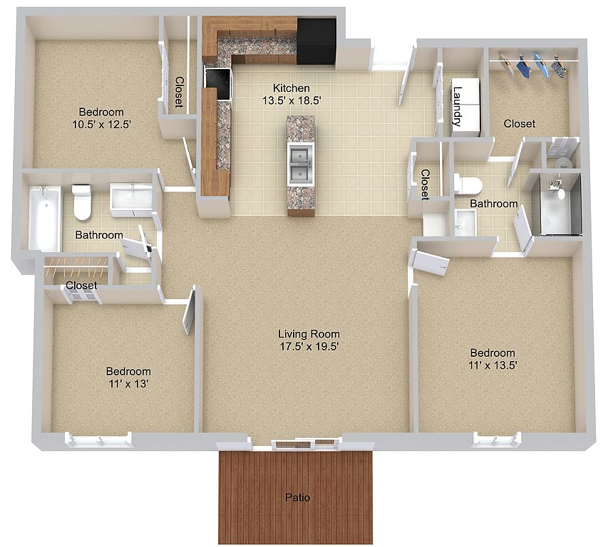 Plush carpetingSpacious kitchensDetached garagesWasher and dryerAmple closet space