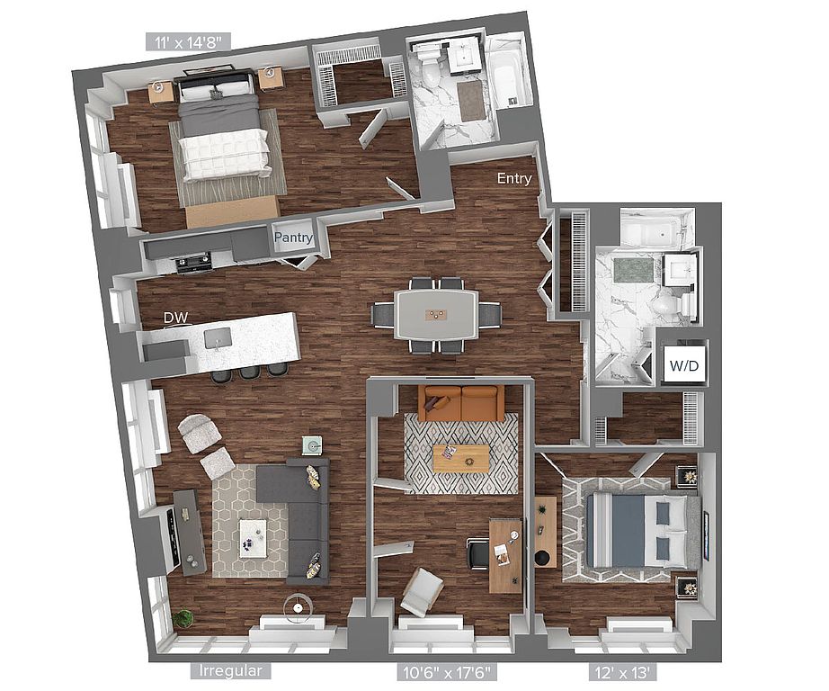 Floor to ceiling windowsSpacious walk-in closetsHardwood floors