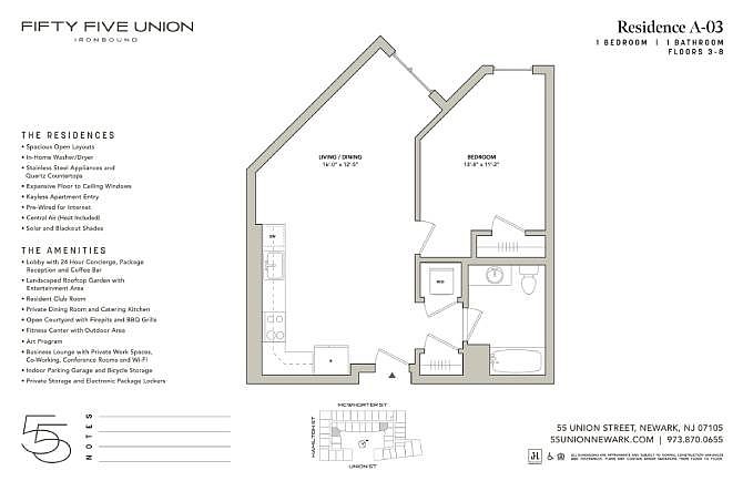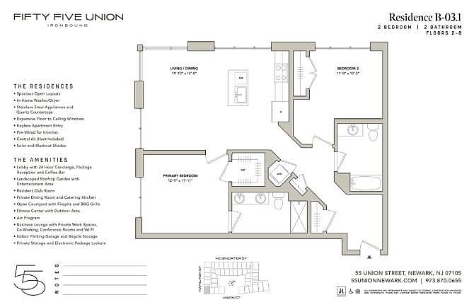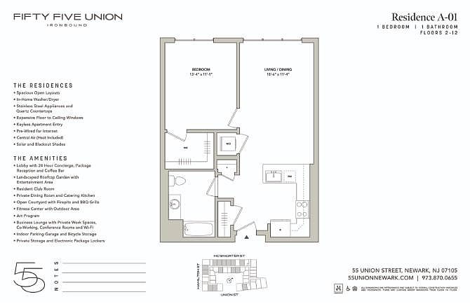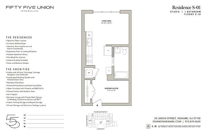 Welcome home to the brand new studio, one and two bedroom homes of 55 Union; a residential collection crafted to deliver all the luxury conveniences you crave, with a focus on sustainability, comfort, and holistic city living.