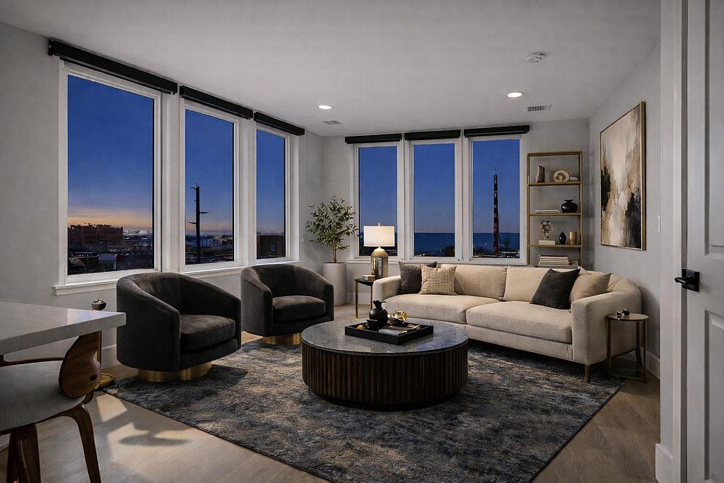 Walls of floor-to-ceiling glassBathed in natural lightBuilt-in luxury amenitiesStunning city viewsExpansive open-concept designSoaring ceilings