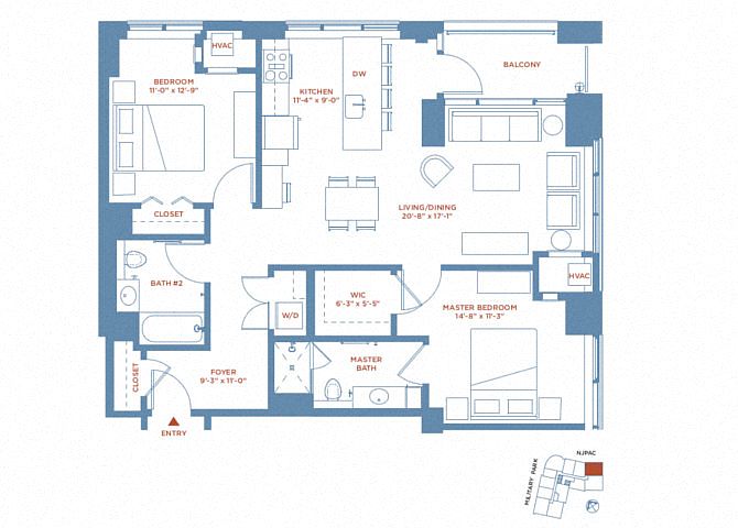 A symbol of Newark downtown revival, One Theater Square is a brand-new, 22-story tower with sweeping city views and a dynamic location. Each spacious, one-, two-, and three-bedroom apartment features must-have details like soaring ceilings, over-sized windows and hardwood floors. Amenities include 24-hour concierge services, a beautiful demonstration kitchen with fireplace and an outdoor terrace with multiple lounge areas. Just steps away from the famed New Jersey Performing Arts Center (NJPAC), One Theater Square is located within minutes to the redesigned Military Park, Whole Foods and a variety of great restaurants and retailers.