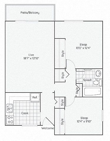 1 bd1 ba672 sqft