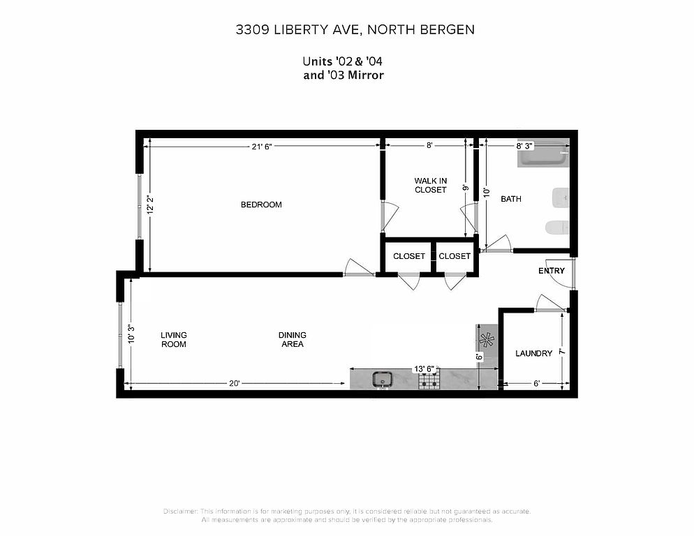 LIVE BRIGHT, LIVE SMART, LIVE LIBERTY. Welcome to North Bergen's newest construction Luxury residence, a masterpiece of modern architecture perfectly situated just 15 minutes from the vibrant heart of New York City. This brand-new construction offers an exquisite living experience with 44 meticulously designed units, each featuring an in-unit washer and dryer, ample closet space, and sleek, modern kitchens adorned with stainless steel appliances. The interiors are further enhanced by elegant hardwood floors and oversized windows that bathe the space in natural light, creating a serene and sophisticated ambiance.