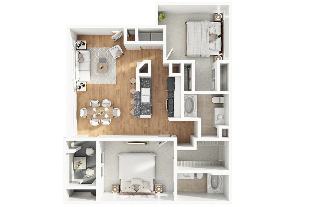 Welcome to The Presidio by Picerne. We have crafted our residences with designer details that make the difference between an apartment and a place to call home. Appointed with walk-in closets, full-size washers and dryers, and gourmet kitchens, we seek to meet your every need. Certain homes include garden tubs, window seats, desks, and pantries, and that is only the beginning of the amenities we offer. Select your new space from our expansive one, two, and three bedroom apartments for rent in North Las Vegas, NV.
