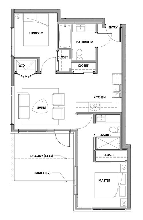 Quartz countertopsOver the range microwaveStylish kitchensRadiant in-floor heating systemIn-suite washer and dryerIndividually controlled thermostatsModern cabinetry
