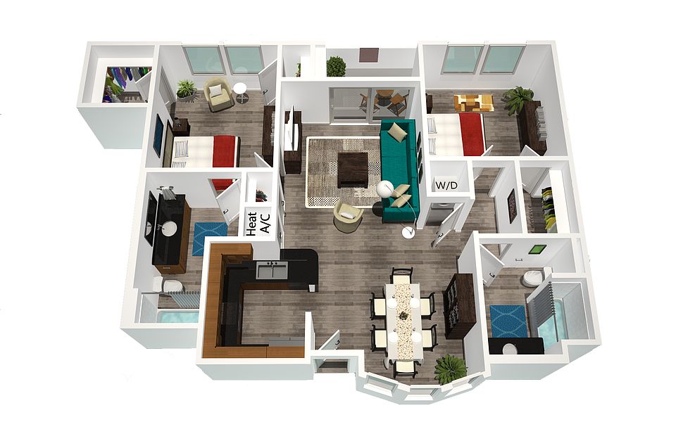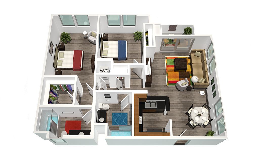 Oversized windowsWood plank-style flooringPrivate balconies or patiosScenic courtyardsOpen-concept layoutsBold modern designHigh ceilings