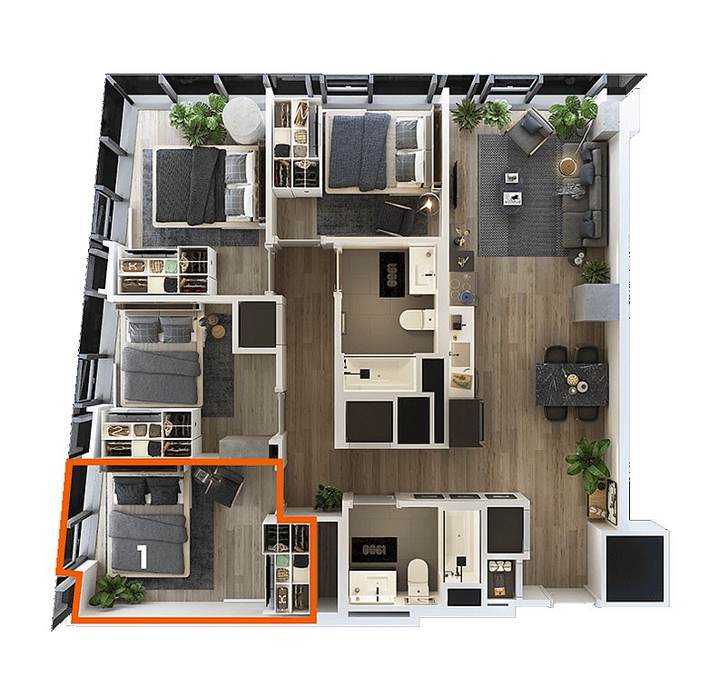 Explore the consciously designed studio, 1-, 2-, 3-, and 4-bedroom apartments at 1900 Broadway. Located in the heart of Oakland, this vibrant community places you within easy reach of the best of Oakland, Berkeley, and San Francisco. Each apartment home features top-of-the-line smart appliances, a Nest thermostat, Italian cabinetry, and more- designed to offer effortless comfort and modern style.