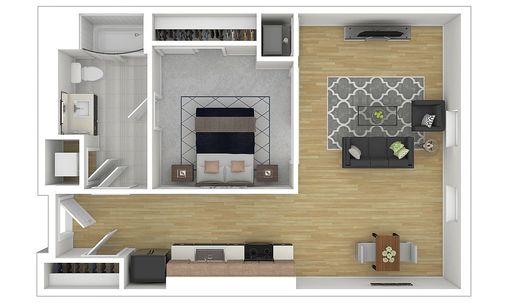 - In Unit: Full-Sized In-Suite Washer and Ventless Dryer