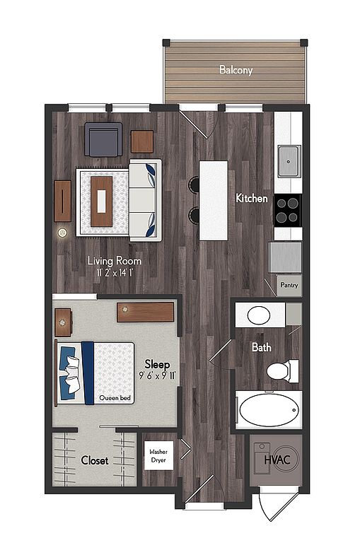 Now for the apartments. Each floor plan boasts gourmet kitchens with quartz countertops and stainless steel appliances. Love natural light and fresh air? Oversized windows let the sunshine in and a private balcony is perfect for morning coffee or evening cocktails. Then there's the closets. So many closets. Pantry closet, linen closet, walk-in closets (for all those new finds). You'll also enjoy access to a 24-hour fitness center, grilling stations, a media lounge and, the best part, worry free maintenance.