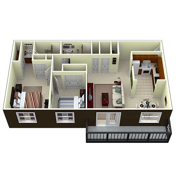 Abundant storage and closetsPrivate patioFully equipped kitchensOutdoor swimming pool