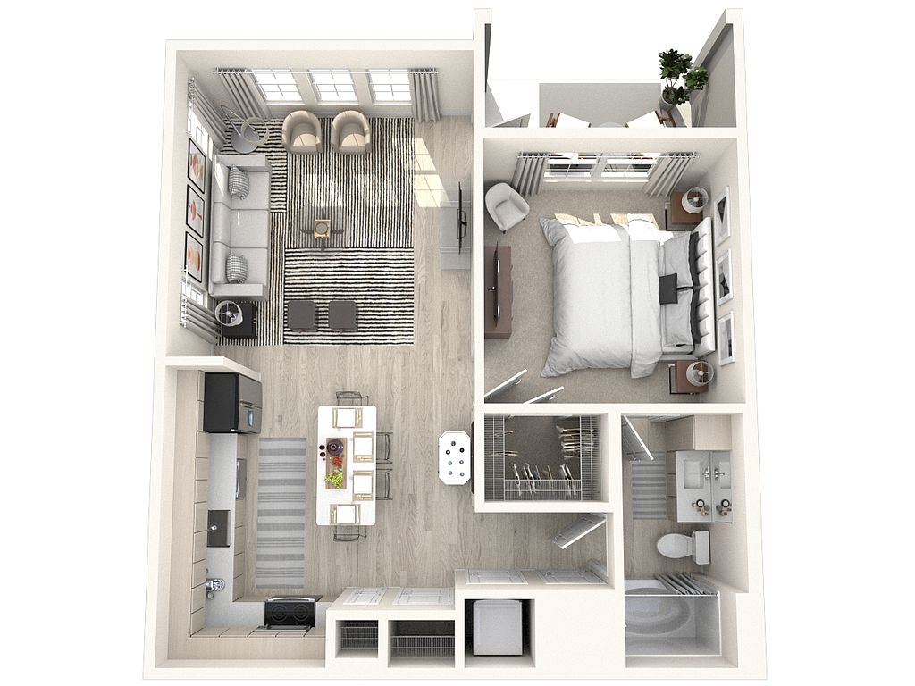 Modern designs, elegant finishes, and upscale amenities await you at Altis Grand Lake Willis. Our Orlando apartments come in one, two, or three-bedroom layouts that are spacious and adaptable. Various interior luxuries adorn them, including private entrances, direct-access garage options, designer finishes, and more. As a resident of our pet-friendly community, you will also have exclusive access to a resort-style swimming pool, fitness center, cafe, and patio with an event room, among other life-enhancing amenities. Our apartments in Orlando offer the perfect blend of form and function. Our style extends beyond the thoughtfully designed interiors, perfectly sized living areas, and modern fixtures of your new apartment home.