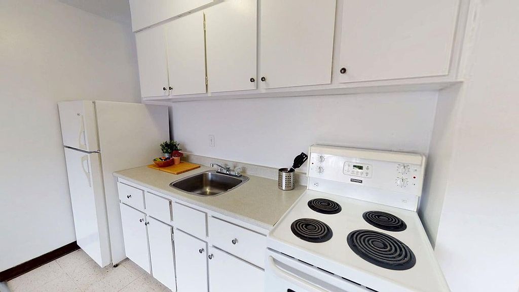 This classic brick mid-rise building features a mix of updated studio, one-, two-, and three-bedroom apartments. Many suites include renovated kitchens with modern finishes, bright living spaces, and hardwood flooring. The building offers a well-maintained setting with practical amenities designed for comfortable urban living.