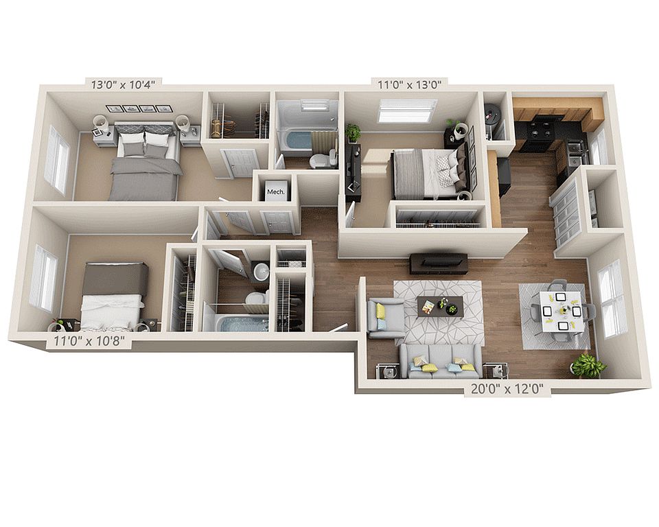 Located in the Oviedo area near Orlando, Alafaya Woods apartments are just two miles away from SR 417 and only minutes from shopping, restaurants, Seminole County Schools and Seminole Community College. The University of Central Florida is just three miles from our doorstep! Experience small-town charm in our two or three-bedroom floor plans. Our two-bedroom apartment has 1100 square feet and a separate dining room, and all of our homes have extra-large closets. Residents may enjoy a refreshing dip in one of our three resort-style swimming pools. For a small-town charm in a modern-style apartment, look no further than Alafaya Woods of Oviedo. We are currently offering self-guided tour appointments.
