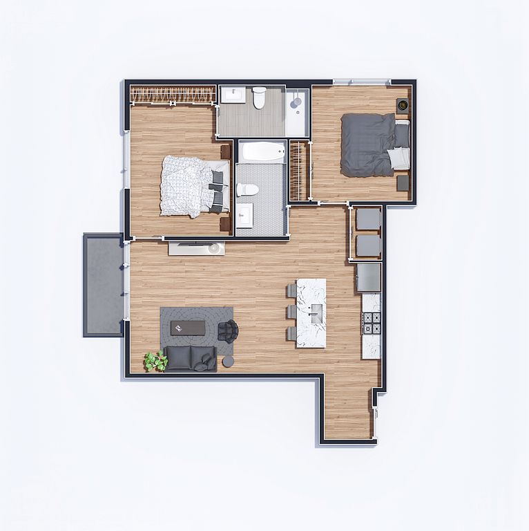All units offer soaring ceilings, massive windows, and tremendous natural light. Stainless steel appliances (including dishwasher!) and custom quartz counters adorn every kitchen. Every apartment has loads of storage and custom closets.