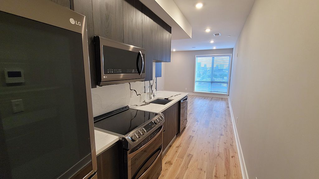 New construction! 6 floors of luxury and convenience. Our apartments have hardwood floors, LED lighting and a washer and dryer inside each unit. Kitchens include custom cabinetry, granite countertops, stainless steel appliances and great closet space. The apartment comes with speakers embedded in the ceiling as well as wall mounted T.V brackets and electrical fireplaces already installed.
