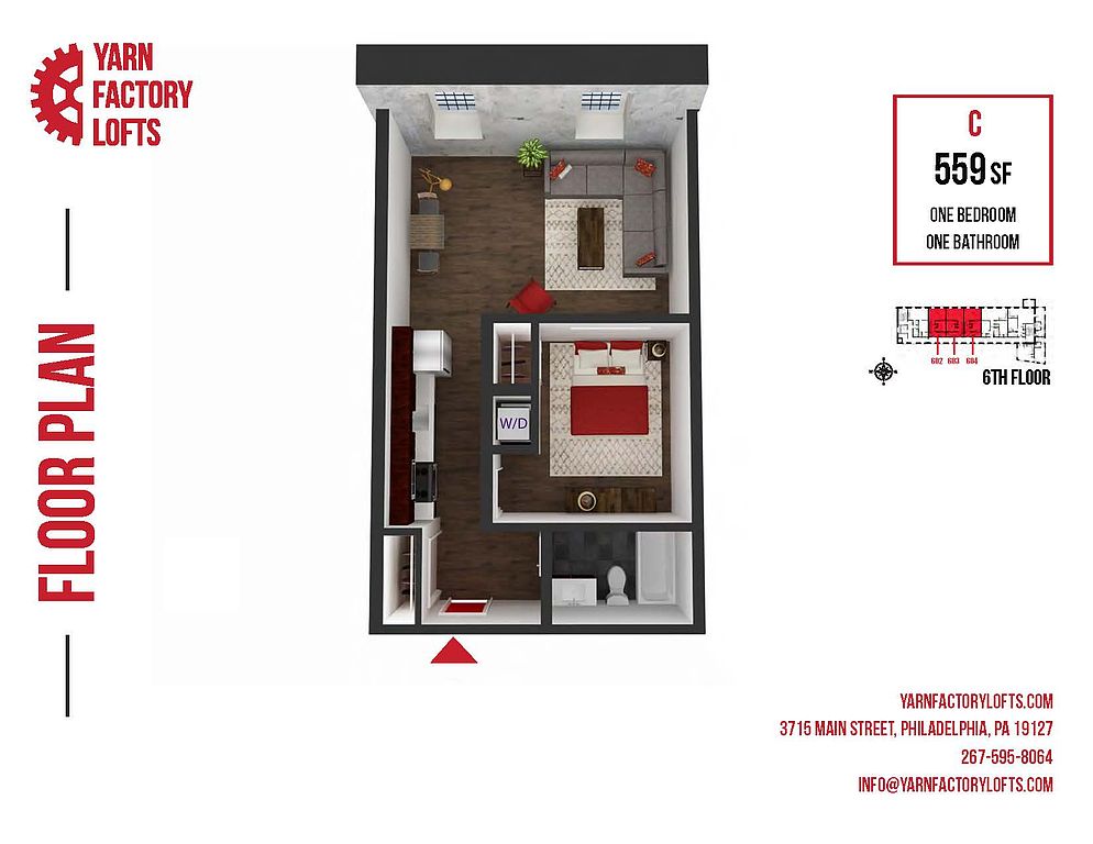 Once the oldest yarn factory in America, Yarn Factory Lofts is now home to an array of one- and two-bedroom luxury loft apartments. Each space incorporates the original design of the building, from restored original hardwood floors and polished concrete to the exposed beams and brickwork. Each space is lit by large windows accompanied by soaring ceilings. All kitchens and bathrooms offer contemporary design and appliances that tastefully compliment the historic atmosphere of the space, including custom-made industrial fixtures and decor.