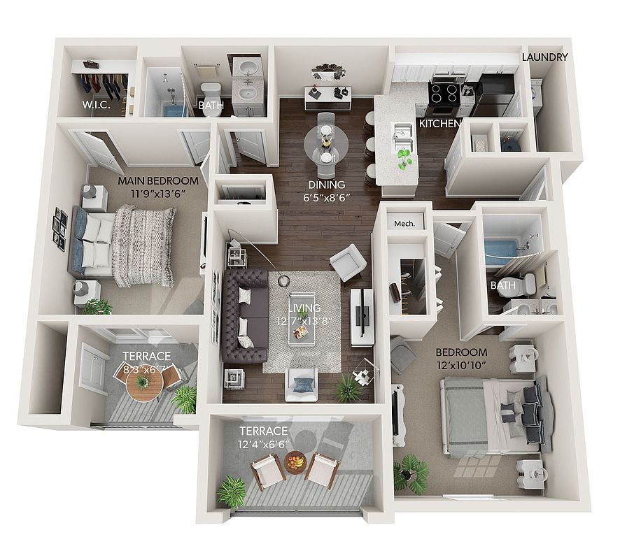 Refreshing swimming poolFull-size washers and dryersSpacious clubhouseHeated spaHard surface flooringVaulted ceilingsCeiling fans