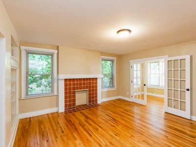 Hardwood floors throughout; decorative fireplaces