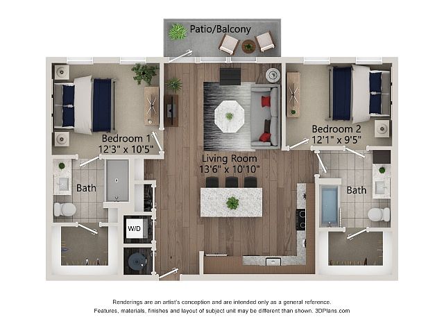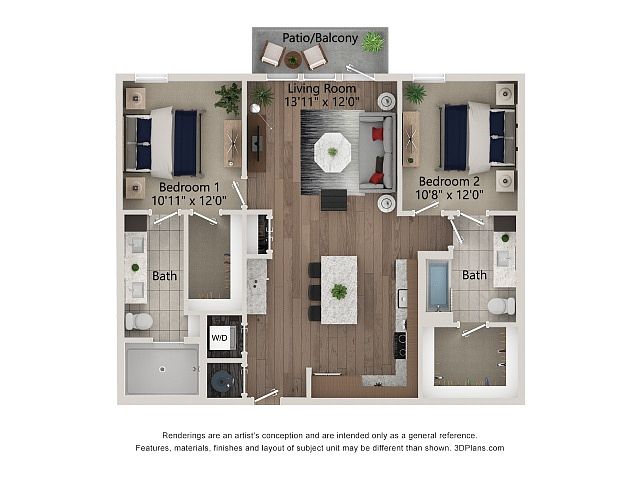 2 bd2 ba1.1K sqft