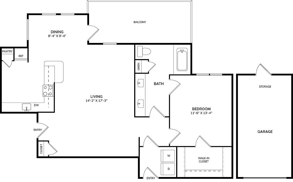 Large bedroomsHardwood-style flooringSeparate dining areaIn-home washer dryerPrivate balcony