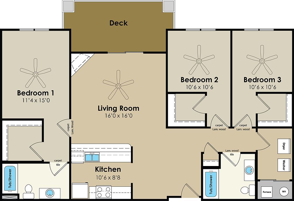 Special offer! $500 Move-In Credit!: Sign your 12-15 month lease for a 3-bedroom to receive a $500 move-in credit!
