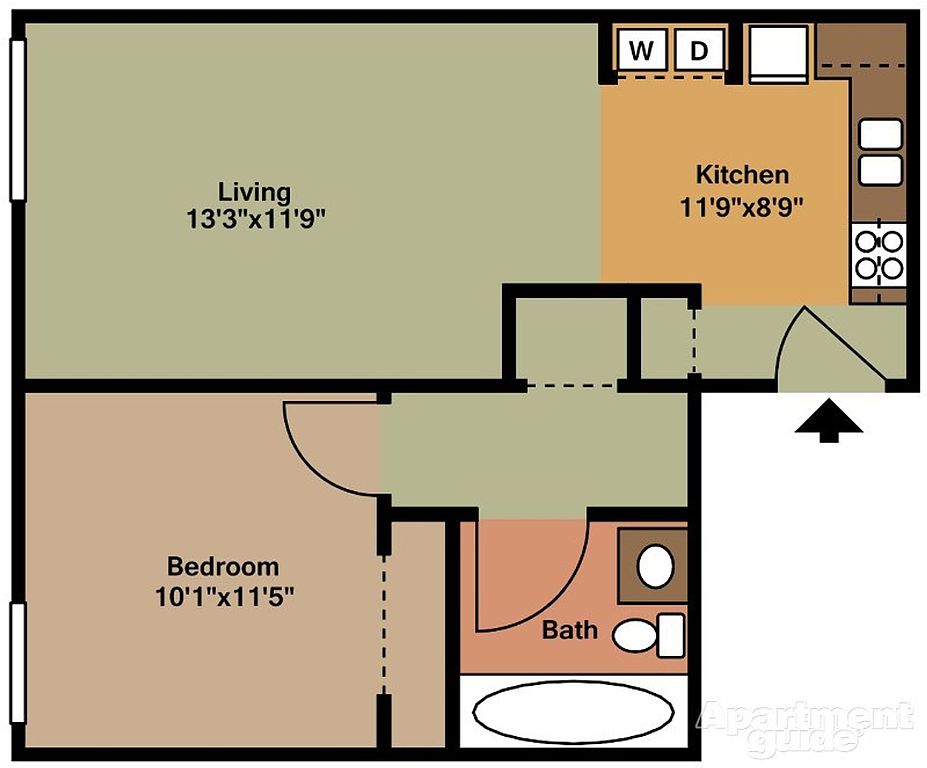 Two bedroom, 1 bathroom, patio has washer/dryer hookups available.