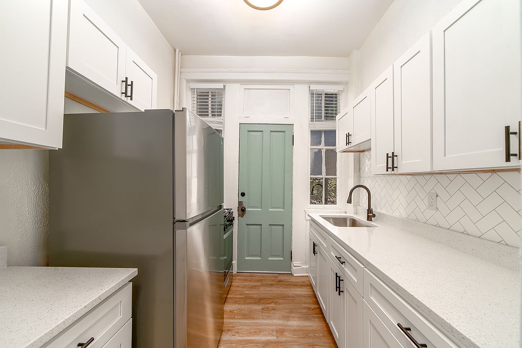 Each thoughtfully updated unit features expansive windows that flood the space with natural light, highlighting the charm of original fireplaces that serve as cozy focal points in the living room. Step out onto your private balcony from the living area and take in the character of the surrounding historic district.