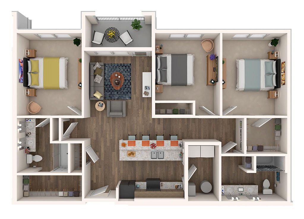 Outdoor fitness areasVegas-style heated poolOutdoor kitchenGranite countertopsWhite trim and doorsBocce ballBrand-new luxury suites