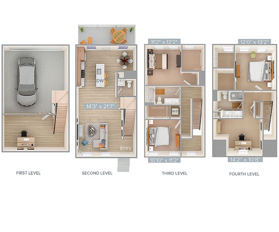 - Two- And Three-bedroom Townhomes With Attached Garages