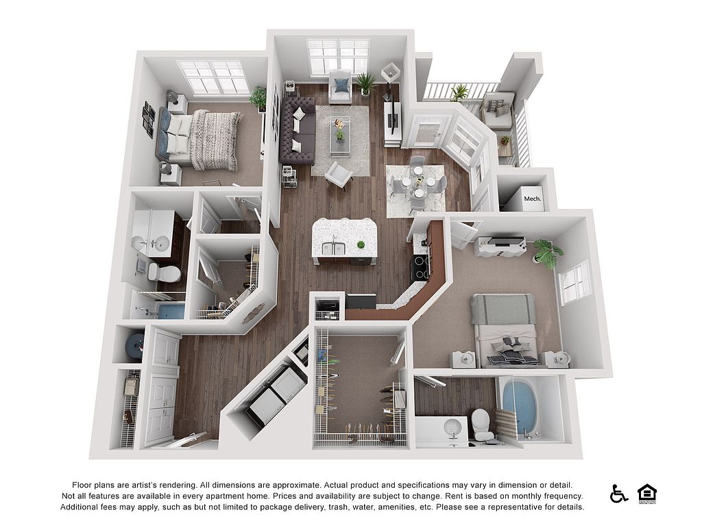 Price shown is Base Rent. Residents are required to pay: At Application: Application Fee ($75.00/applicant, nonrefundable); At Move-in: Admin Fee ($150.00/unit); Security Deposit (Refundable) ($750.00/unit); Access Device ($50.00/device); Monthly: Security Deposit Alternative ($21.50/unit); Cable TV and Internet ($75.00/unit); Community Amenity Fee ($5.00/unit); Pest Control ($5.00/unit); Trash-Doorstep ($25.00/unit); Trash-Hauling ($9.00/unit); Water/Sewer (usage-based); Electric-3rd Party (usage-based); Utility-Billing Admin Fee ($3.75/unit); Stormwater/Drainage (usage-based); Package Services ($5.00/unit); Renters Liability Insurance-3rd Party (varies). Please visit the property website for a full list of all optional and situational fees. Floor plans are artist's rendering. All dimensions are approximate. Actual product and specifications may vary in dimension or detail. Not all features are available in every rental home. Please see a representative for details.