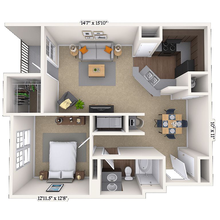 Sparkling resort-inspired poolRoommate-friendly layoutsOn-site dog park