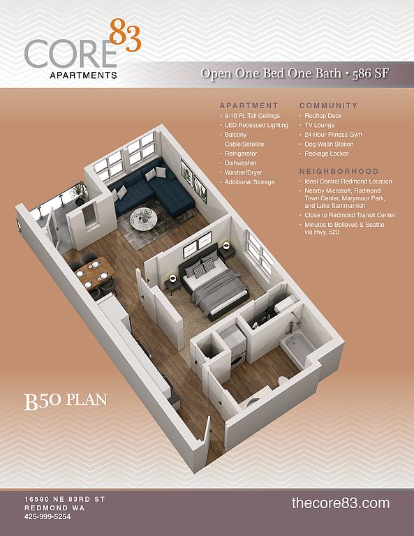 Choose from two designer color schemes in these spaciously and elegantly appointed Redmond apartment homes at CORE 83. Come see for yourself by scheduling an appointment today.