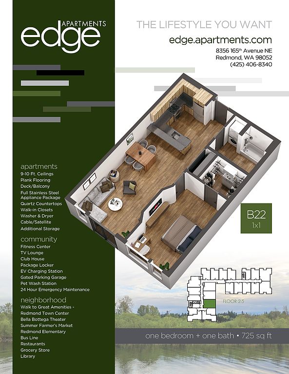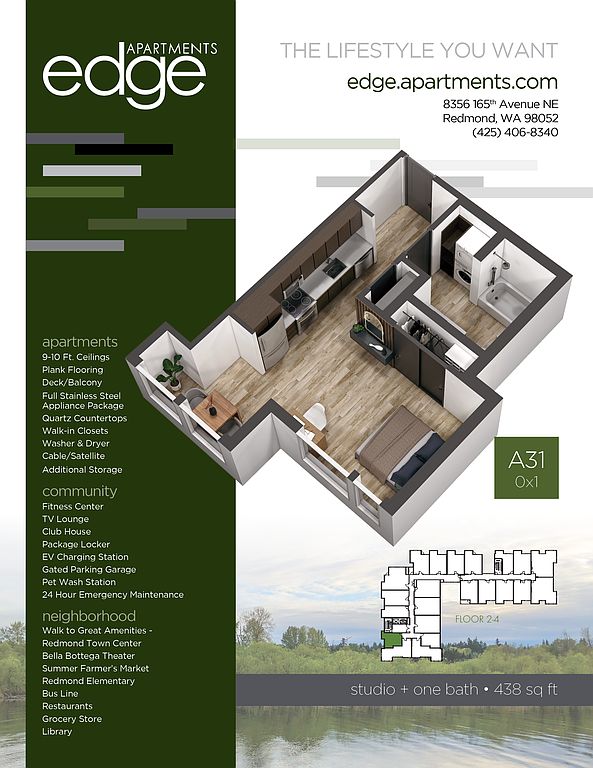 Edge Apartments is in the Downtown neighborhood in Redmond, WA.