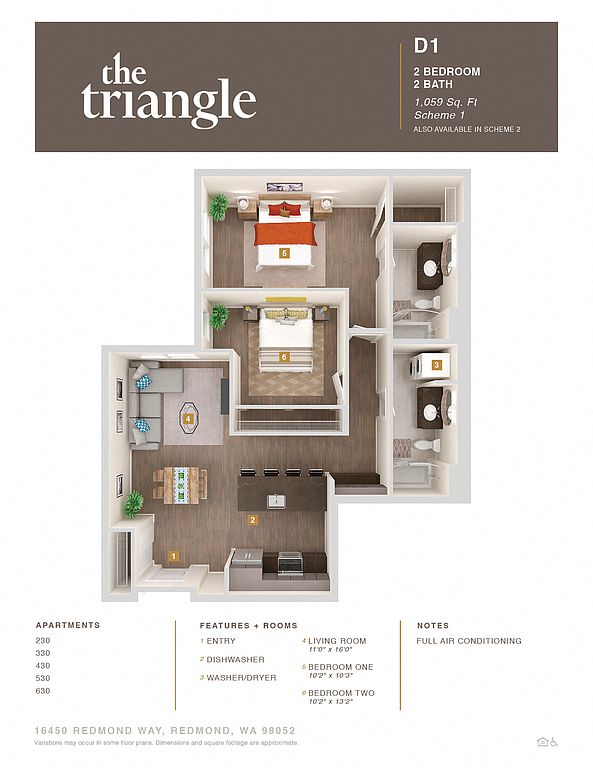 The Triangle is in the Downtown neighborhood in Redmond, WA.