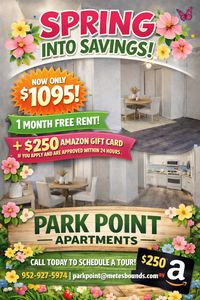 LIMITED TIME SPECIAL: First month's rent free with a signed 12-month lease on select units. Must move in by 3.31.26. Heat, water, and trash included in rent. Offer subject to termination or change without notice. Welcome home! Fountainhead Apartments offers a convenient location, moments from downtown Minneapolis and St. Paul, Mall of America, and the MSP Airport. Fountainhead Apartments feature spacious one, two, and three-bedroom apartment homes, fiber-optic internet service is available, patios/balconies, fountains, an outdoor pool, fitness center, and many barbecue/picnic areas. Fountainhead Apartments is on the bus line. Rent includes heat, water and trash. Visit today and see why you will love to call Fountainhead home!