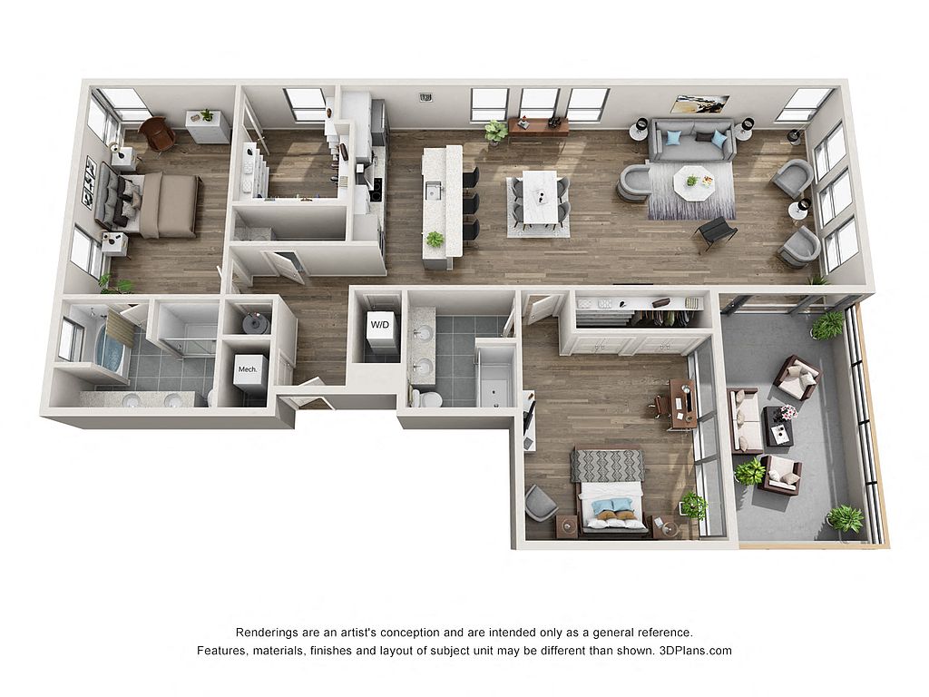 Private courtyardWood floorsPicturesque windowsGranite countertopsModern cabinetryTile flooring