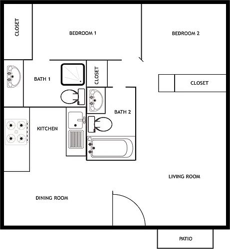 Our apartment rentals are ALL two bedroom and two FULL bathroom residences with your own private entry and balcony/patio area. The floor plans here are very practical and useful. We offer: FREE parking, Swimming pool, NEWLY REMODELED units - 961 - 974 sq. ft., Central air conditioning / heating, located next to a UCR Highlander shuttle stop and various restaurants / stores / banks / gym / etc.