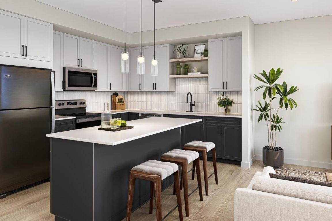 Unit features: elevated 9-foot ceilings, walk-in closets, in-home washer & dryer, upgraded painted cabinetry, open-concept living spaces and stainless steel appliance package. Select units have upgraded finishes and features.