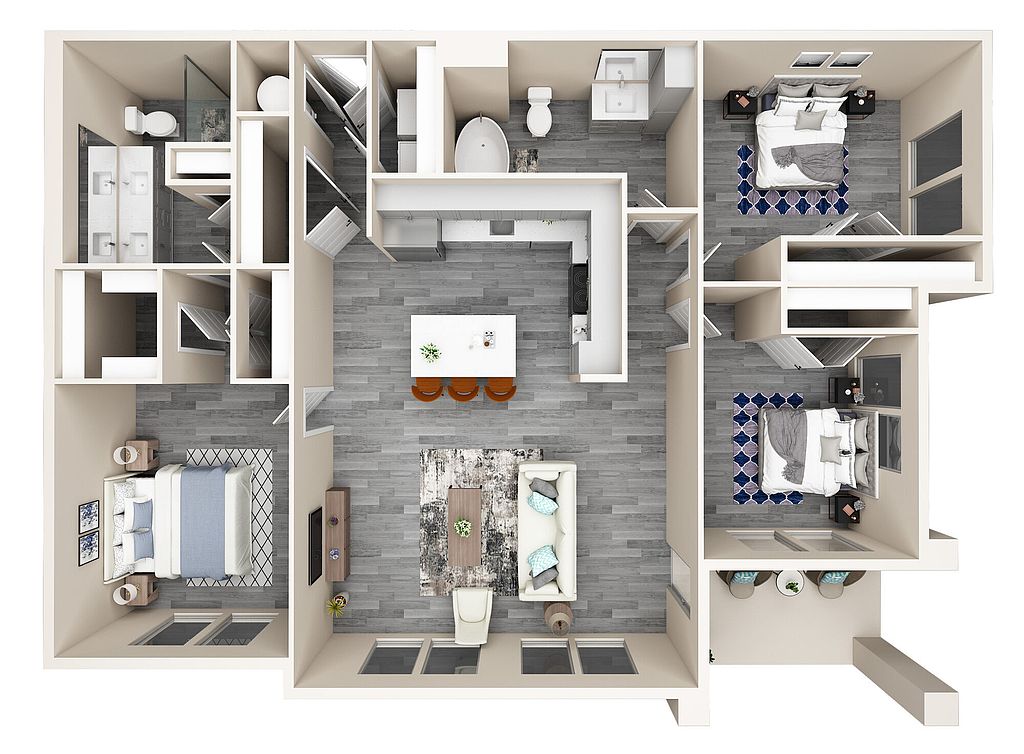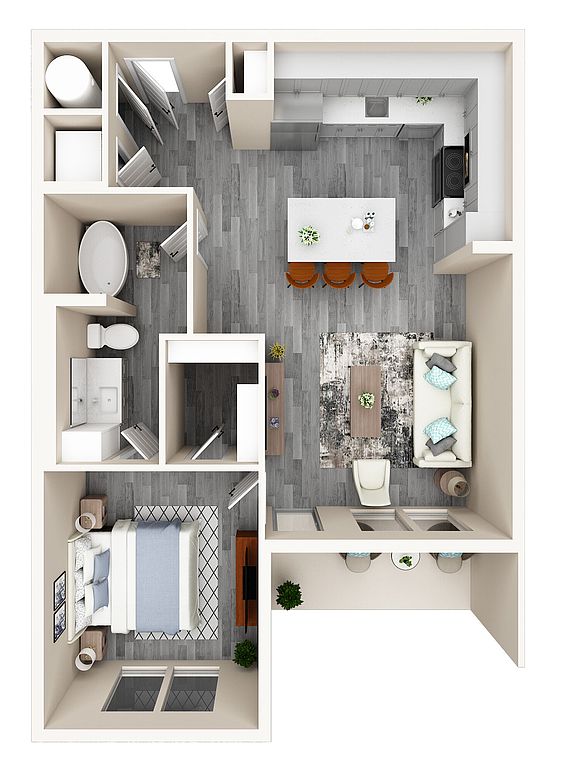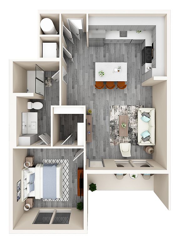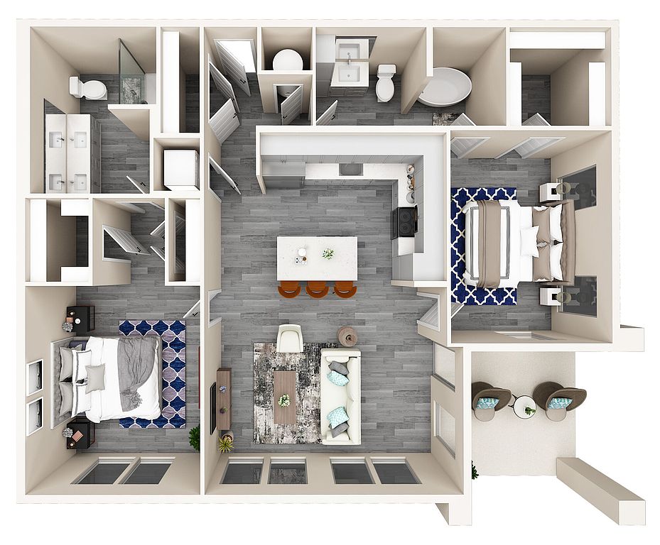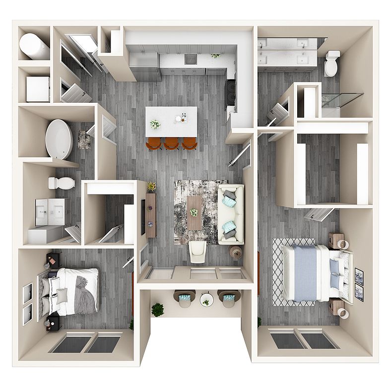 Private screened patiosQuartz countertopsSoft-close cabinetryPrep islandsSpacious walk-in closetsSmart home keyless entry
