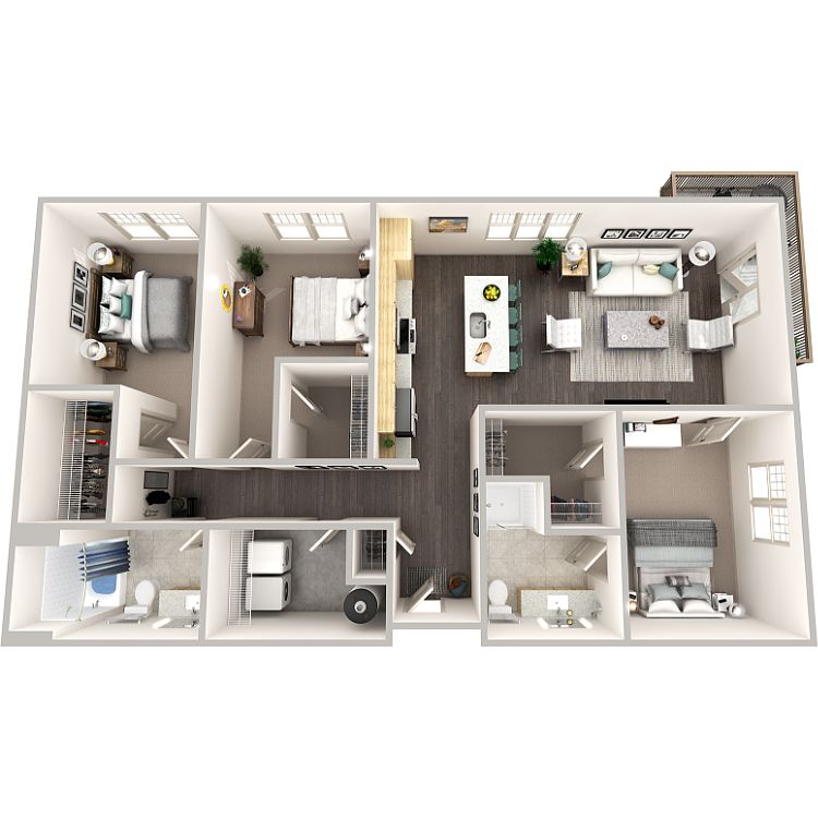 - Offering Studio, 1 Bed, 2 Bed, & 3 Bed Floor Plans