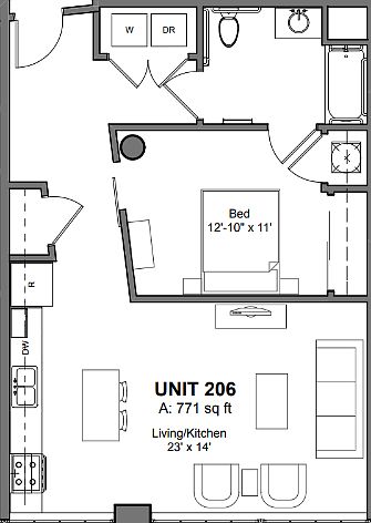 Each apartment comes with in-unit washer/dryer, stainless steel appliances, spacious kitchens, quartz countertops, and efficient LED lighting throughout. Most of the apartments also feature a kitchen island, and some have a sidebar with additional cabinetry above. The building has an elevator to make moving easier, as well as a trash chute on the 2nd and 3rd floors so you don't have to lug your garbage all the way to the dumpster in the garage. Complimentary bike storage is provided on the 1st floor, along with dedicated storage enclosures in the garage for $35/mo, pending availability.