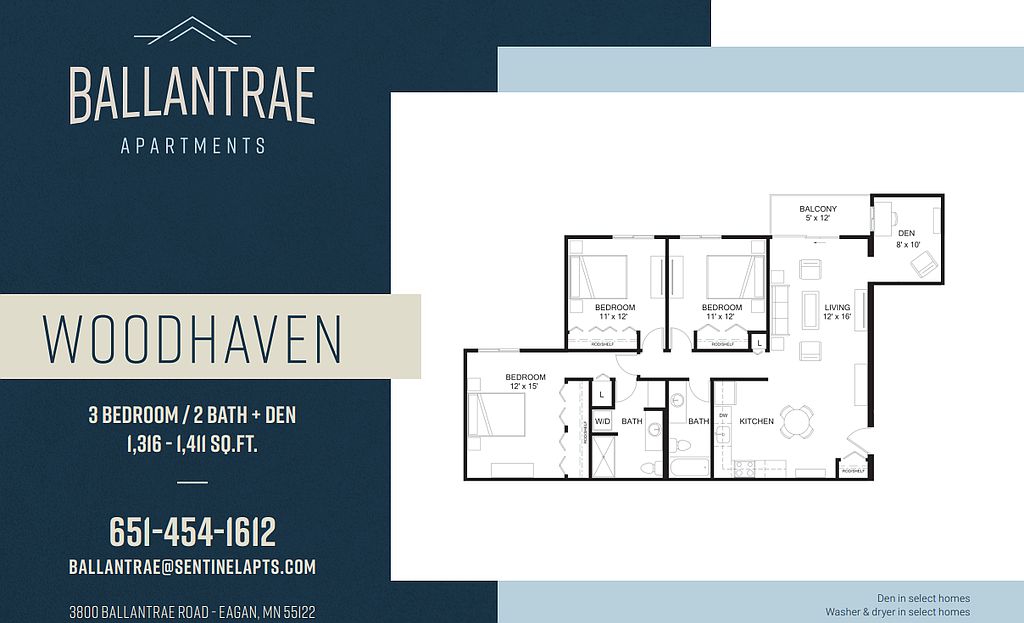 Now with In-Unit Washers and Dryers! Phase II New Construction with condo-style finishes Now Open! Comfortably nestled among mature trees, expansive green spaces, and impeccable landscaping, Ballantrae Apartments offers a pleasant escape from the hustle-bustle busyness of everyday life. Take a moment to unwind in our newly renovated pool and fitness room, plush community room with free wi-fi, and highly walkable outdoor spaces. A convenient location near the intersection of Highways 77 & 13, on major bus lines, and just blocks away from Eagan's Premium Outlet Mall makes it easy to stay connected to what is important. Our fully remodeled buildings offer a bright new look to our property, making Ballantrae Apartments the perfect place to bring family and friends. Welcome home to tranquility and convenience. Welcome home to Ballantrae!